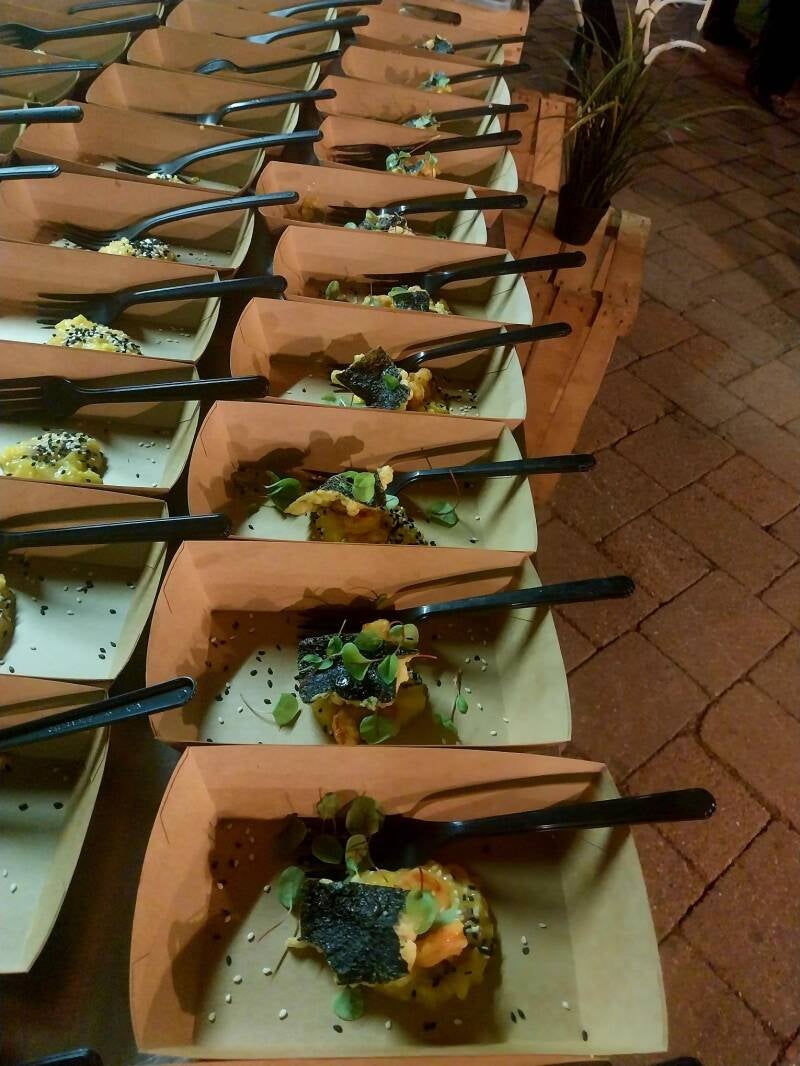 Dit BBQ bites buffet bestaat uit mooi opgemaakte kleine gerechtjes per stuk gepresenteerd. Dus geen grote schalen op het buffet, maar allemaal kleine schaaltjes, bakjes en glaasjes vol met lekkers en dat allemaal live bereid door onze koks.